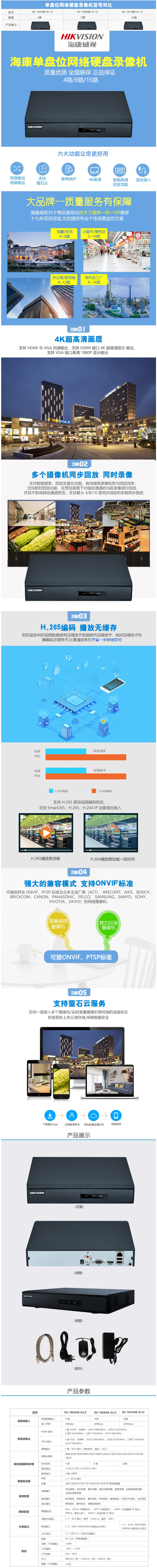 海康威视DS-7804NB-K1/C网络硬盘录像机4路 自营