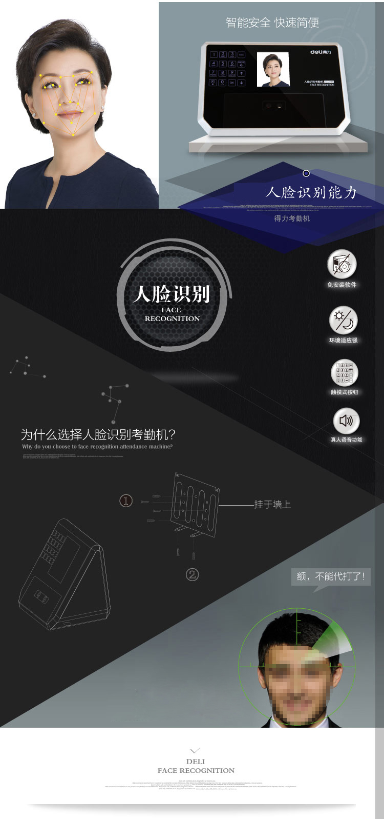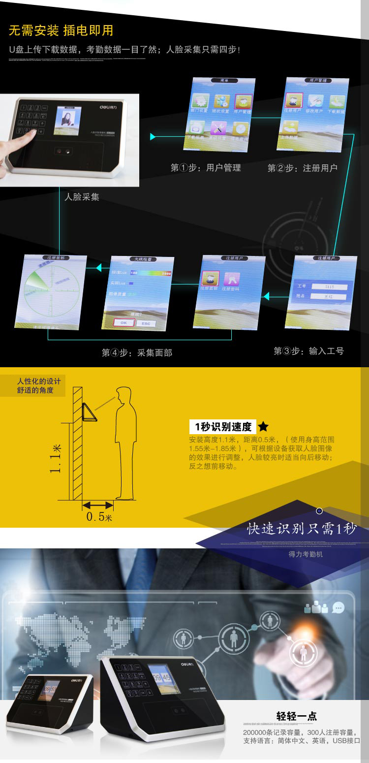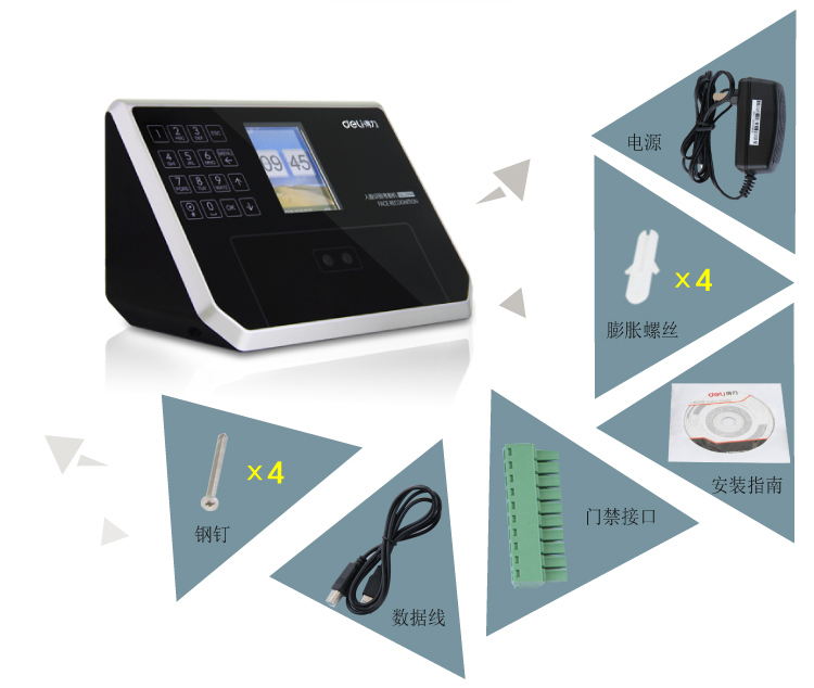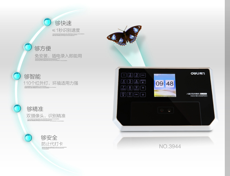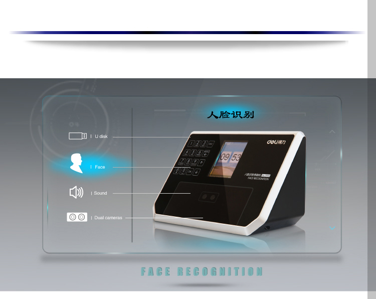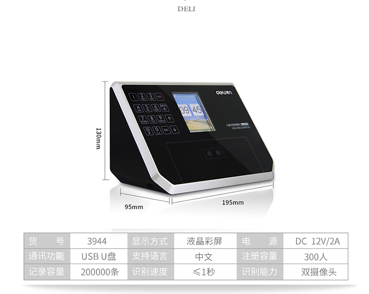 得力(deli)3944精准人脸识别考勤机液晶彩屏/触摸式按键/真人语音 自营