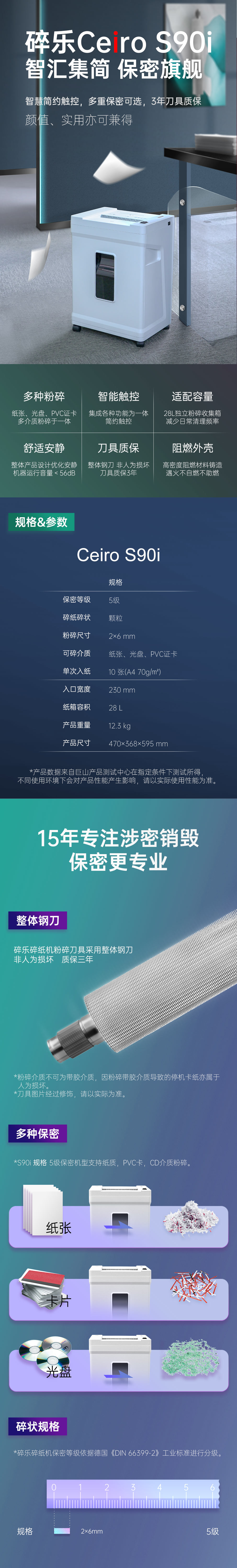 (Ceiro) S90i 德国[DIN 66399]标准5级保密 小型办公碎纸机 多功能 自营