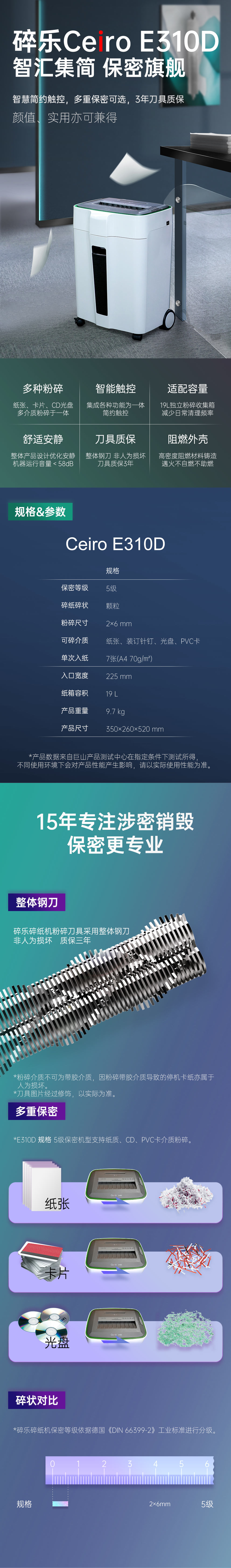 5级保密智能自动碎纸机E310D纸张、PVC证件、光盘分类回收 自营