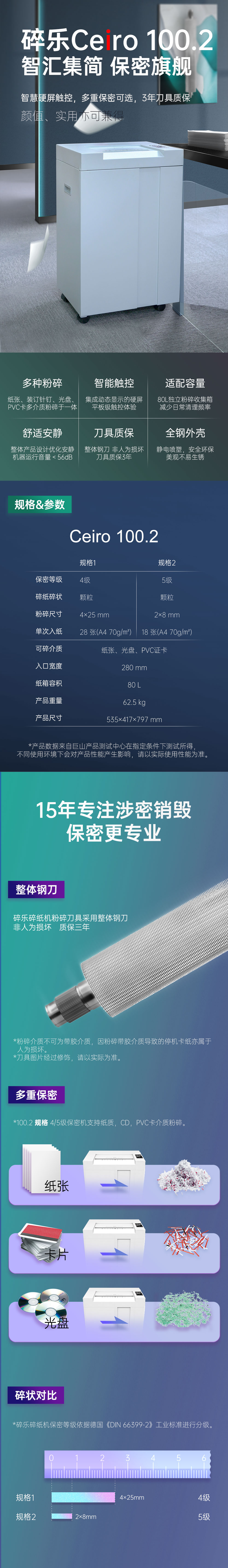 碎乐(Ceiro) 100.2 4级保密 办公碎纸机 多功能碎纸机 自营